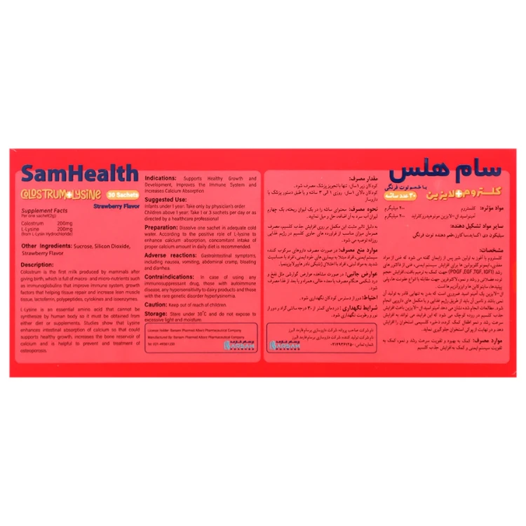 رشد کودک, ساشه سام هلس, سام هلس strawberry sachet, طعم توت‌فرنگی, کلستروم, لایزین, مکمل تغذیه کودکان